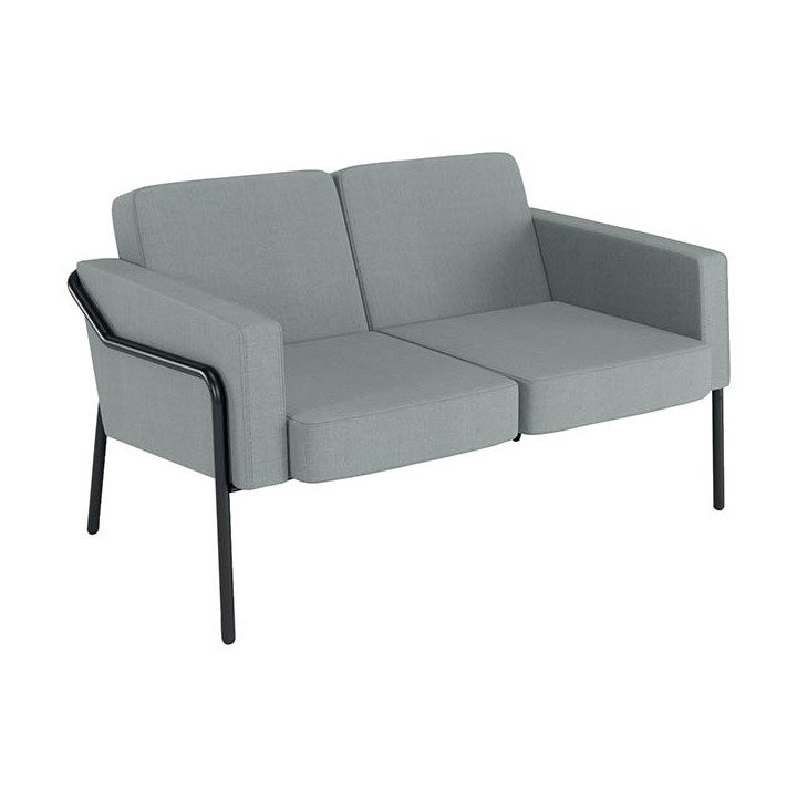Canapé Medso 2 places gris. Structure : tube acier Ø 25 mm, finition époxy noir mat. Garniture assise et dossier : mousse polyuréthane 30kg/m3, épaisseur : 12 cm. Garniture accoudoir : mousse polyuréthane 30kg/m3, épaisseur : 9 cm. Revêtement : tissu 100% polyester, déhoussable. Dimensions du fauteuil: Hauteur d’assise : 41 cm. Profondeur d’assise : 51,5 cm. Dimensions: H. 74 X L. 125 X P. 74,7 cm. Livré semi-monté, assemblage facile en 5 minutes sans outil ni vis. Plus produit : éco conception, confort d’assise, design consensuel et intemporel, seconde vie du produit : possibilité de changer l’assise et le dossier pour une durée de vie « infinie ». Pour utilisateur jusqu'à 150kg. Garantie 10 ans.