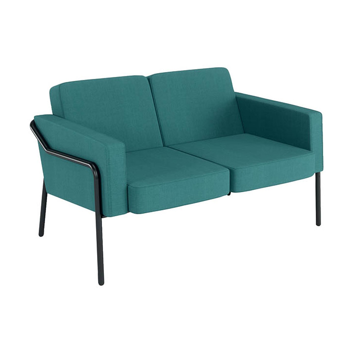 Canapé Medso 2 places turquoise. Structure : tube acier Ø 25 mm, finition époxy noir mat. Garniture assise et dossier : mousse polyuréthane 30kg/m3, épaisseur : 12 cm. Garniture accoudoir : mousse polyuréthane 30kg/m3, épaisseur : 9 cm. Revêtement : tissu 100% polyester, déhoussable. Dimensions du fauteuil: Hauteur d’assise : 41 cm. Profondeur d’assise : 51,5 cm. Dimensions: H. 74 X L. 125 X P. 74,7 cm. Livré semi-monté, assemblage facile en 5 minutes sans outil ni vis. Plus produit : éco conception, confort d’assise, design consensuel et intemporel, seconde vie du produit : possibilité de changer l’assise et le dossier pour une durée de vie « infinie ». Pour utilisateur jusqu'à 150kg. Garantie 10 ans.
