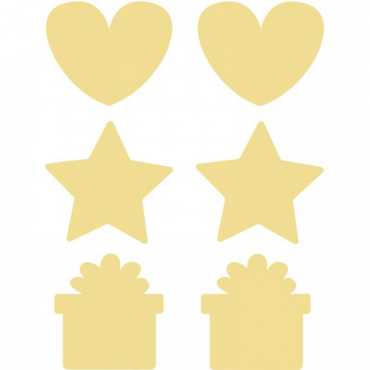 Pack de 36 stickers à gratter, format 17 x 22 cm. 6 planches, 3 formes assorties cœurs, étoiles, cadeaux. Positionner la gommette sur un support de couleur et écrivez votre message pour un résultat optimal.