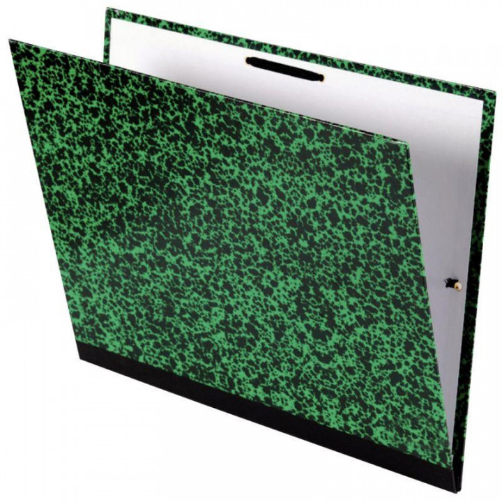 Carton à dessin 52x72cm. Carton à dessin recouvert de papier Annonay verni vert et noir. Dos toilé 20 mm.