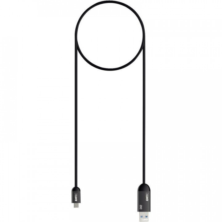 Dual USB Emtec 3.1 micro USB de 32 go. - Logiciel EMTEC Connect disponible sur lApple Store® et Google Play®. - USB A 3.0 (3.1 Gen 1)*. - Capacité 32 Go - Dim câble : L.70 cm. Garantie 2 ans.