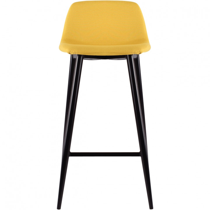 Lot de 2 tabourets Must jaune safran. Structure en contreplaqué. Revêtement tissu 100% polyester. Garniture en mousse polyuréthane 20 kg/m3. Piètement en tube acier fuselé laqué époxy noir. Hauteur d'assise 73cm. Dim: H95xP45xL50cm. A assembler. Garantie 1 an.