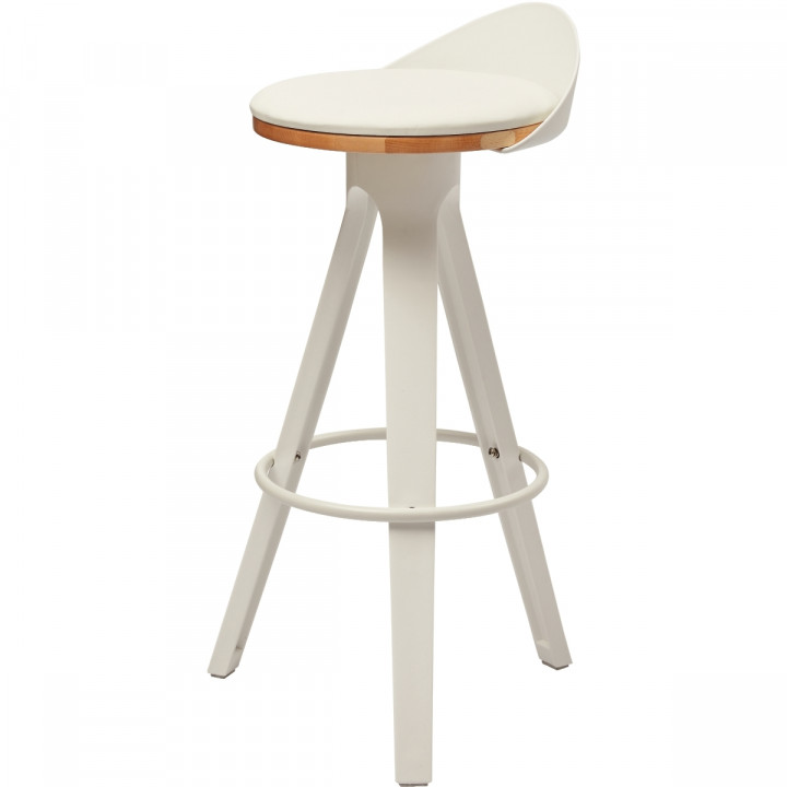 Tabouret Break blanc. Assise rembourrée de mousse et recouverte de polyuréthane. Dossier et piètement en polypropylène. Repose-pieds en métal. NORMES : FSC-STD-40-004-V 3.0 / ISO 9001 / BSCI. Garantie 2 ans.