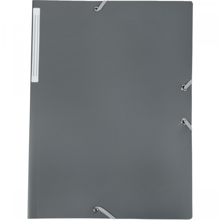Chemise 3 rabats à élastiques en polypropylène opaque 4/10ème, gris. Étiquette de dos. Dos 2,8 cm. Capacité 250 feuilles.