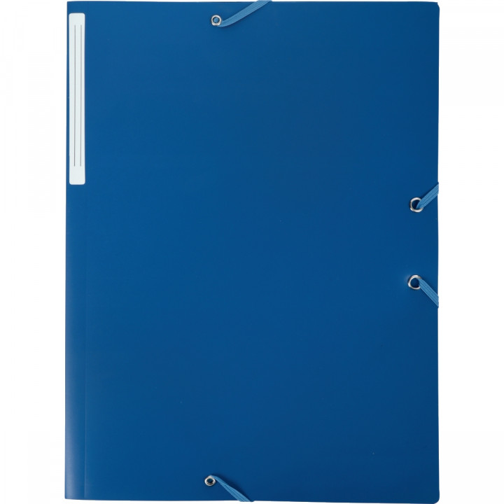 Chemise 3 rabats à élastiques en polypropylène opaque 4/10ème, bleu. Étiquette de dos. Dos 2,8 cm. Capacité 250 feuilles.
