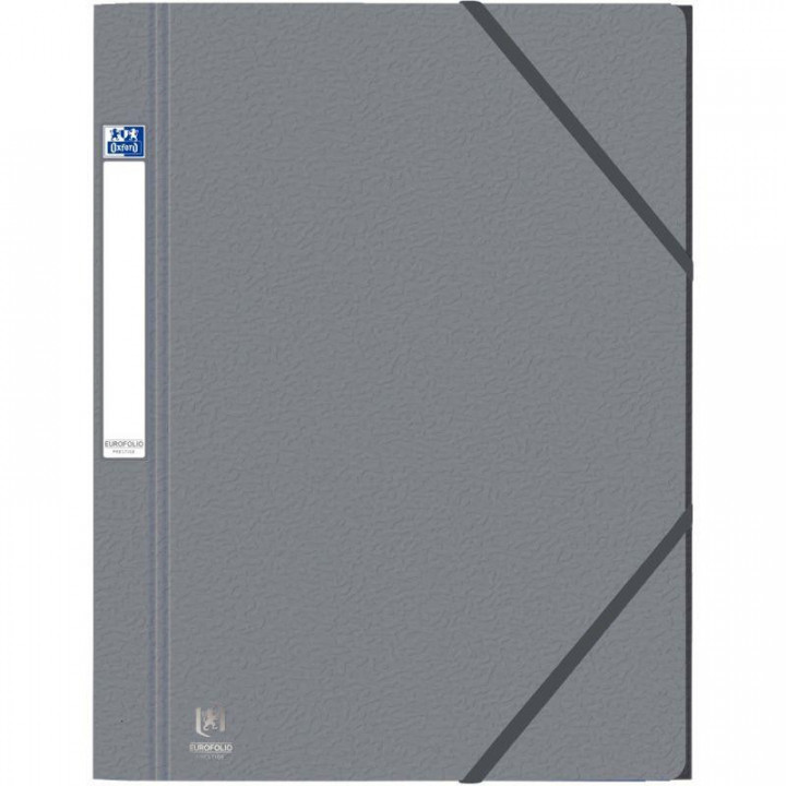Chemise 3 rabats à élastiques EUROFOLIO+ Prestige en carte grainée 7/10ème, gris. Carte grainée en relief ultra résistante 7/10ème, 600g. Pour format A4 à classer. Grands rabats à triple rivetage pour une protection maximale de vos documents. Étiquette adhésive de dos. Dos de 2,5 cm. La teinte peut varier selon les livraisons (gris + ou - foncé).