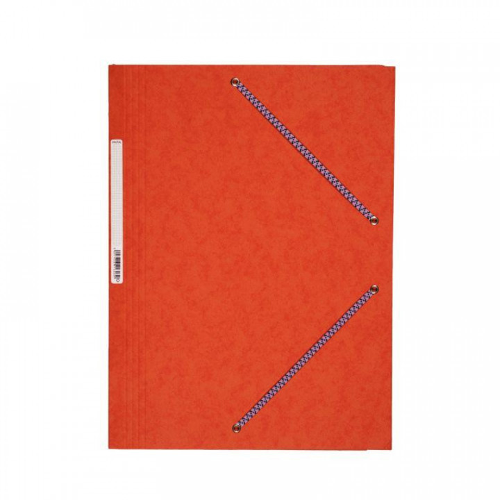 Chemise 3 rabats à élastiques en carte lustrée 5/10ème 350g, orange. 100% pâte neuve. Format 24 x 32 cm. Avec étiquette de dos. Dos 3 cm. Capacité 250 feuilles.