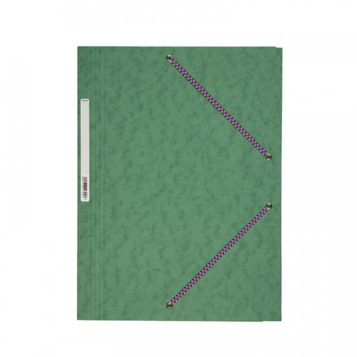 Chemise 3 rabats à élastiques en carte lustrée 355g, vert. Carte lustrée 4,75/10ème. Format 24x32 cm pour documents A4. Avec étiquette de dos. Dos 2,5 cm. Capacité 200 feuilles.