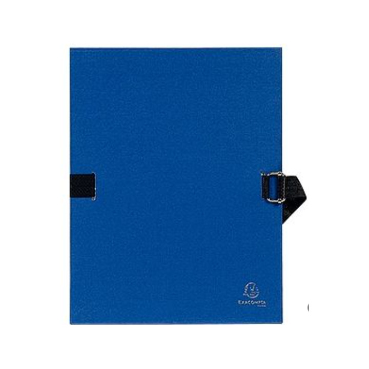 Chemise extensible toilée, bleu foncé. Sans rabat. Plats et dos en carton recouvert de papier toilé. Fermeture par sangle et boucle métal à coulisseau cranté. Format 24x32 cm pour documents A4. Dos extensible jusqu'à 13 cm. Capacité 1000 feuilles.