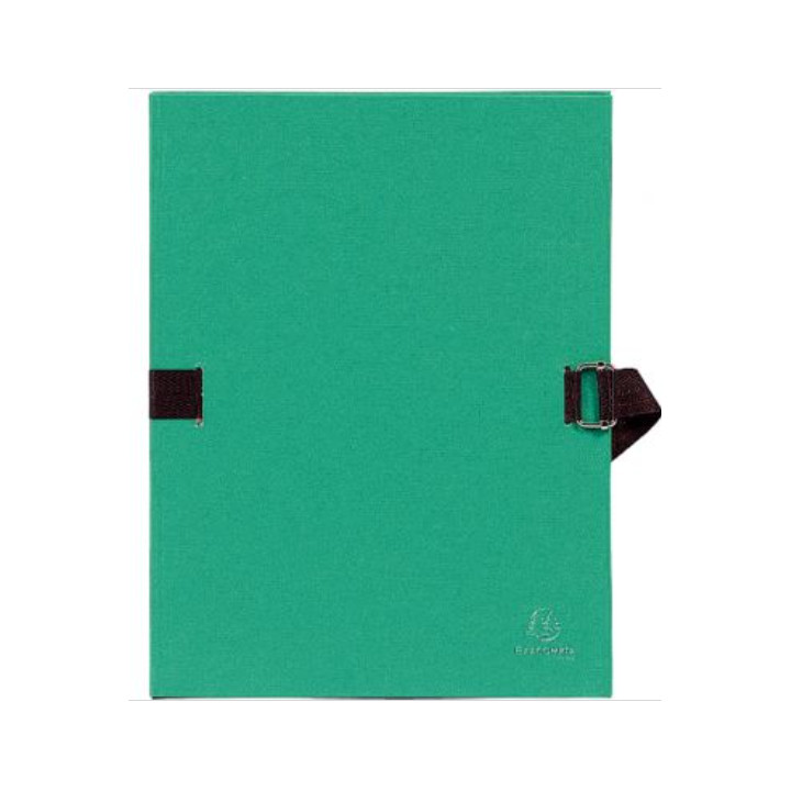 Chemise extensible toilée, vert clair. Sans rabat. Plats et dos en carton recouvert de papier toilé. Fermeture par sangle et boucle métal à coulisseau cranté. Format 24x32 cm pour documents A4. Dos extensible jusqu'à 13 cm. Capacité 1000 feuilles.