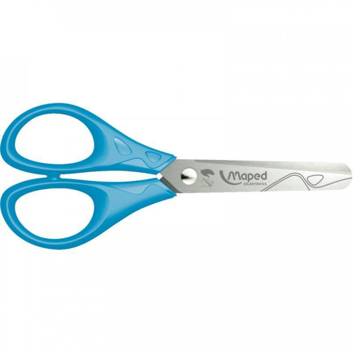 Ciseaux ESSENTIALS pour gaucher 13cm. En plastique, anneaux symétriques, lames graduées, bouts ronds. Pour gauchers.