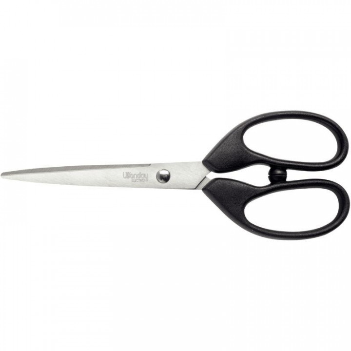 Ciseaux ambidextres 17cm ELECTRON. Lames en acier inoxydable, bouts pointus, anneaux symétriques coloris noir.
