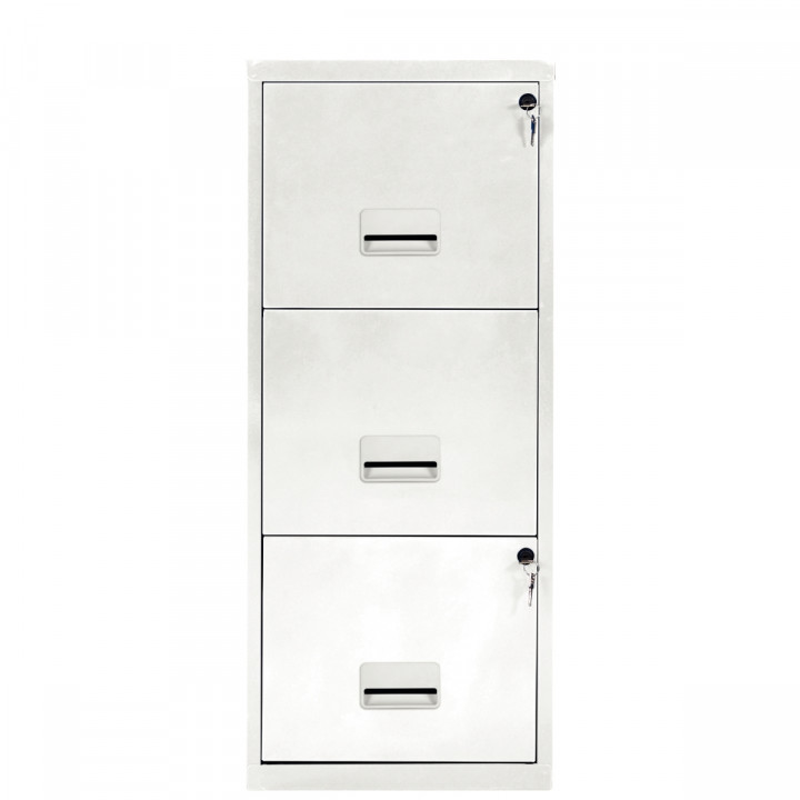 Classeur économique 3 tiroirs pour dossiers suspendus Blanc. H96 cm x P40 cm x L40 cm. Garantie 2 ans.