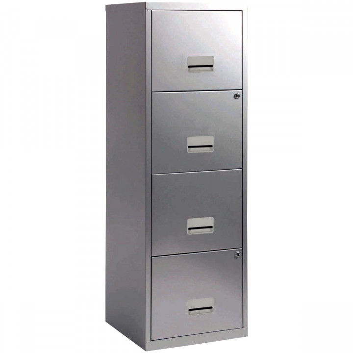 Classeur économique 4 tiroirs pour dossiers suspendus Aluminium. H126 cm x P40 cm x L40 cm. Garantie 2 ans.