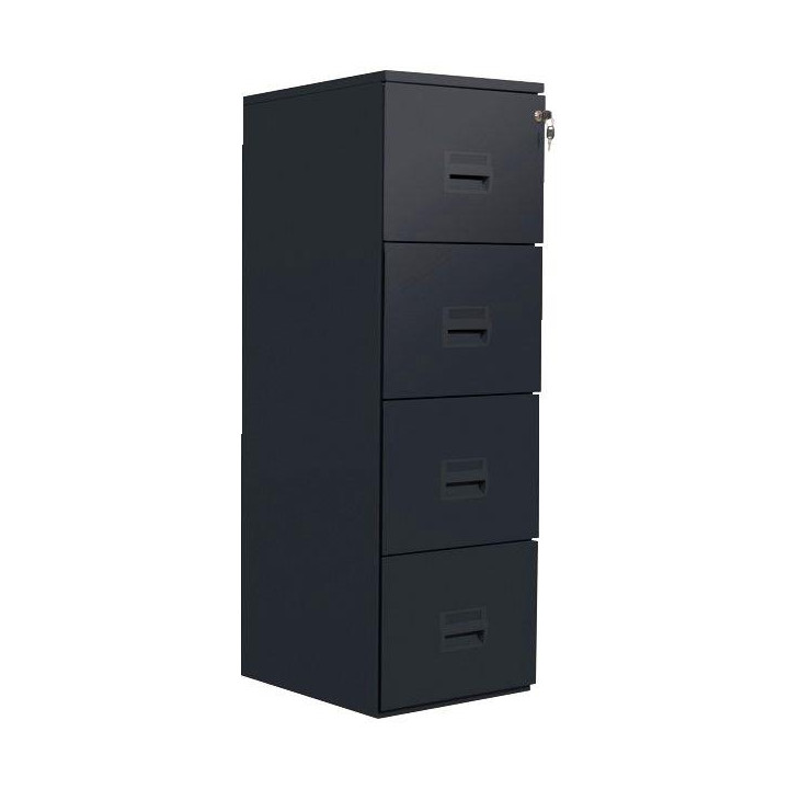 Classeur fichier 4 tiroirs pour dossiers suspendus Noir. L41,8 cm x H130,8 cm x P54,1 cm. Garantie 5 ans.