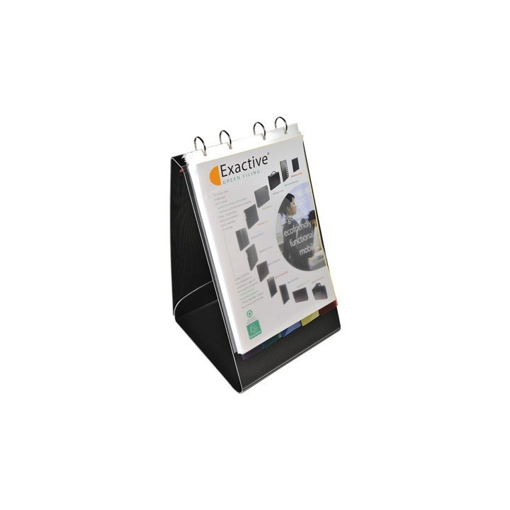 Mécanique 4 anneaux ronds de 3 cm. Livré avec 5 intercalaires et 25 pochettes perforées A4, 2 pochettes intérieures pour insertion CD et cartes de visite. Présentation chevalet en format A4 paysage ou portrait.
