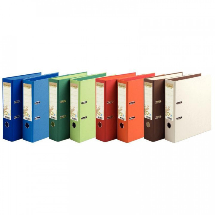 Carton de 10 classeurs à levier FOREVER, dos 8 cm, coloris assortis. Couverture bicolore en carton recouvert intérieur et extérieur de papier 100 recyclé. Étiquette de dos imprimée. Œillet de préhension métallique. Coins métal renforcés pour une meilleure longévité. Format 29 x 32 cm pour documents A4 (21 x 29,7 cm) à classer. Mécanisme Prem'Touch en acier renforcé garanti 10 ans et ergonomique grâce à son bouton poussoir. 8 coloris assortis : bleu clair, bleu foncé, chocolat, ivoire, orange, rouge, vert clair et vert foncé.