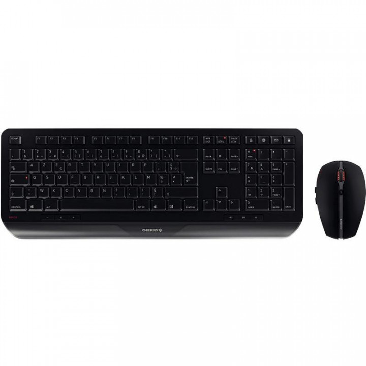 Pack clavier et souris sans fil Cherry Gentix Desktop. Clavier sans fil 2,4 GHz avec repose- poignets Conception robuste et marquage des touches résistant 3 LED intégrées (MAJ, NUM et DEFIL) 10 touches bureautiques / multimédia Souris 6 boutons - résolution 1000 / 2000 dpi Autonomie jusqu'à 3 ans