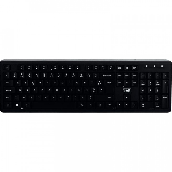 Clavier sans fil T'NB KBSILENT couleur noir. Technologie ultra silencieuse avec amortissement optimal des touches. Connexion automatique Plug & Play USB-A AZERTY, 12 raccourcis multimédia. Garantie 2 ans.