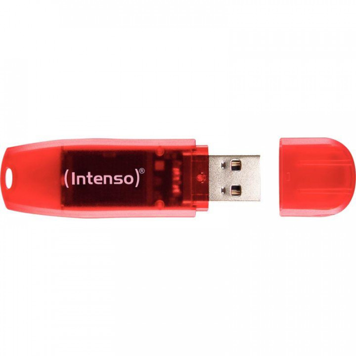 Clé USB 2,0 Intenso Rainbow 128 Go. - Vitesse maximale de lecture : 28 Mo/s (173x). - Vitesse maximale d’écriture : 6,50 Mo/s (37x). Garantie 2 ans.