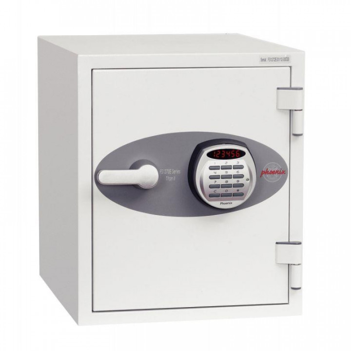 Coffre-fort TITAN 25L avec femeture électronique. Le coffre Titan II de Phoenix est moderne, compact résistant au feu et aux attaques par effraction, il estconçu pour répondre aux besoins à des fins résidentielles et d?affaires.Protection contre le feu (papier) : Testé par la norme standard Internationale NT Fire 017 ? 60, aucentre Suédois SP Testing Centre le coffre protège les documents papier pendant 60 minutes.Protection contre le feu (Données Numériques) : Testé par la norme standard au feu MTC-DIP120-60DM, le coffre protège les données numériques DVD, Clefs USB, Cartes mémoires, pendant60 minutes.Verrouillage : Equipé d'une serrure électronique de haute sécurité de pointe avec affichage LED clair.Afin de renforcer la sécurité, la serrure dispose également d'une alarme intérieure, un double contrôle,code caché et code brouillé.Protection de sécurité : le coffre-fort est recommandé pour un risque de trésorerie de 2000? ou de20, 000 ? pour les objets de valeur pendant une nuit. Le coffre est prêt pour être fixé au sol, avec boulonnerie fournie pour sol en béton.Test de chute : A été testé pour une chute de 9,1 mètres avec résistance à l'impact pour une chute à travers les étages en feu d'un bâtiment ou l'effondrement de l'immeuble.Caractéristiques spéciales : Tous les modèles sont fournis avec des crochets pour clefs, et les modèlesFS1272E & FS1273E ont l?avantage d?être équipés d?une étagère à hauteur réglable et d?un tiroir amovible.Couleur : Finition par une peinture de qualité supérieure anti-rayure RAL9003 Blanc Titan II FS1272E Dim extérieures (LxHxP) mm : 350x410x430 Dim intérieures (LxHxP) mm : 260x320x304 Garantie : 2 ans Poids 34 kg Capacité 25 litres Dimensions et poids emballés 505mm x 445mm x 540mm / 38kg Crochets à clefs à l'intérieur : 4 « Nous consulter, transport et manutention sur devis »