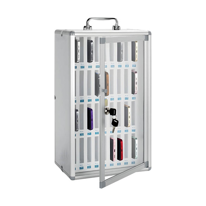 Boîte de Rangement Sécurisée pour 36 téléphones portable. Boîte de Rangement Sécurisée pour 36 téléphones portable. Boîte de Rangement Sécurisée pour Téléphone Portable – Murale & Polyvalente - Sécurité renforcée : Verrou intégré pour protéger les téléphones et petits appareils, idéal pour les lieux très fréquentés (usines, écoles, bureaux, événements). - Polyvalente et peu encombrant : Permet de ranger divers objets personnels. Format compact avec option de fication murale pour libérer de l'espace. Intérieur en coton perlé pour éviter les rayures. - Design durable et esthétique : Fabriquée en acrylique transparent et aluminium, elle allie robustresse et élégance. La transparence facilite l'identification rapide du contenu. - Usage professionnel : Parfaite pour les conférences, réunions, établissement scolaires, restaurants ou zone industriellee. Elle offre une solution de rangement sécurisée et organisée.