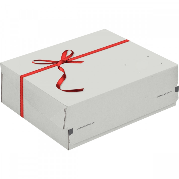 Paquet de 10 boites cadeaux blanc 363 x 280 x 125. Emballage cadeau imprimé coffret pouvant être expédié · Papier naturel mat moderne · Construction attrayante avec couvercle refermable pour le stockage/rangement · Montage simple et rapide grâce à la fermeture autocollante ColomPac® . Impression de haute qualité – Couvercle refermable pour le rangement