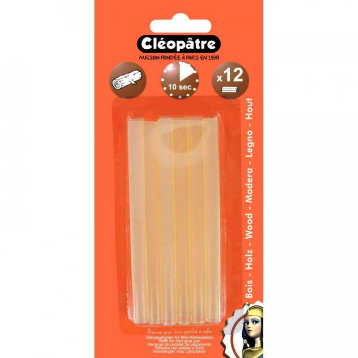 Blister de 12 recharges de colle bois. Colle légèrement orangée. Prise immédiate et très forte. Diamètre : 7 mm.