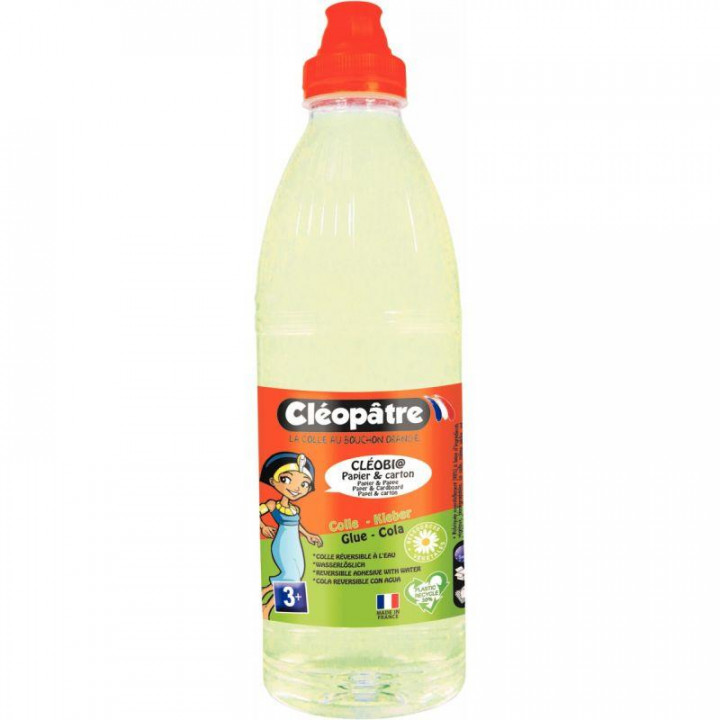 Flacon de colle 1 Kg Cléobio. La colle végétale Cléobio est une colle fabriquée à base d’amidon et d’eau au format de 1Kg. Elle offre une application facile, précise et homogène, et assure un collage pratique, propre et sans traces. Destinée au collage du papier, elle est épaisse et facile à étaler. Cléobio est réversible à l’eau et grâce à sa texture et sa faible teneur en eau, elle évite au papier de gondoler. Beaucoup plus efficace et moins cher que le bâton de colle, elle est aussi plus écologique.