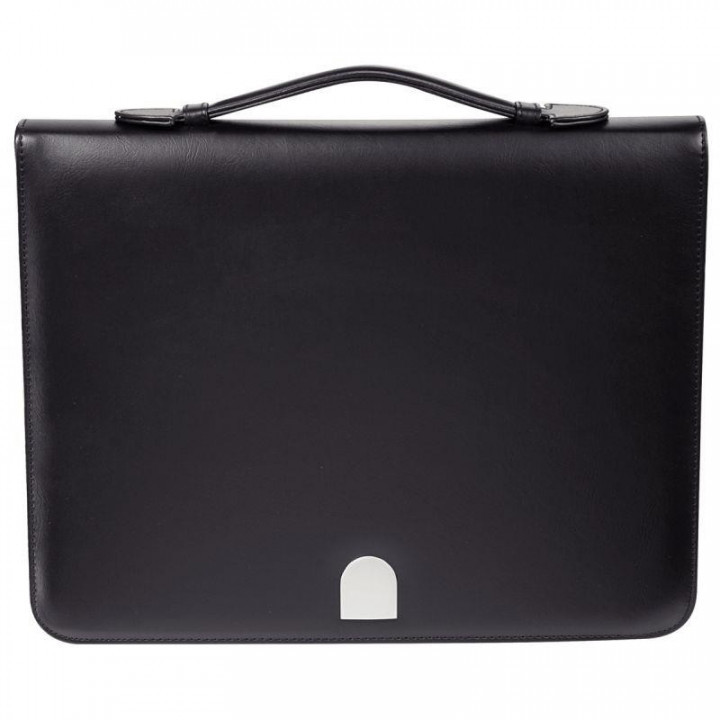 Conférencier en PVC format A4 noir. 5 emplacements intérieurs dont une pour un téléphone portable, et une poignée. Fermeture zip. Livré avec un bloc A4 et 2 portes stylos. Dimensions : 36.5x28cm, coloris noir.