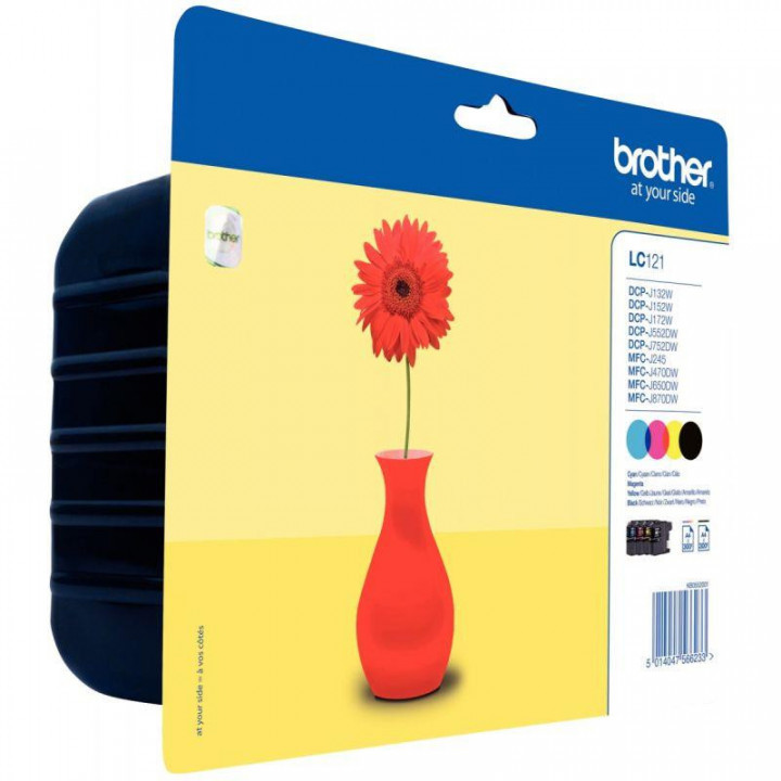 Brother MARGUERITE ROUGE pack de 4 cartouches jet d'encre noire, cyan, magenta et jaune authentique (LC121VALBP).