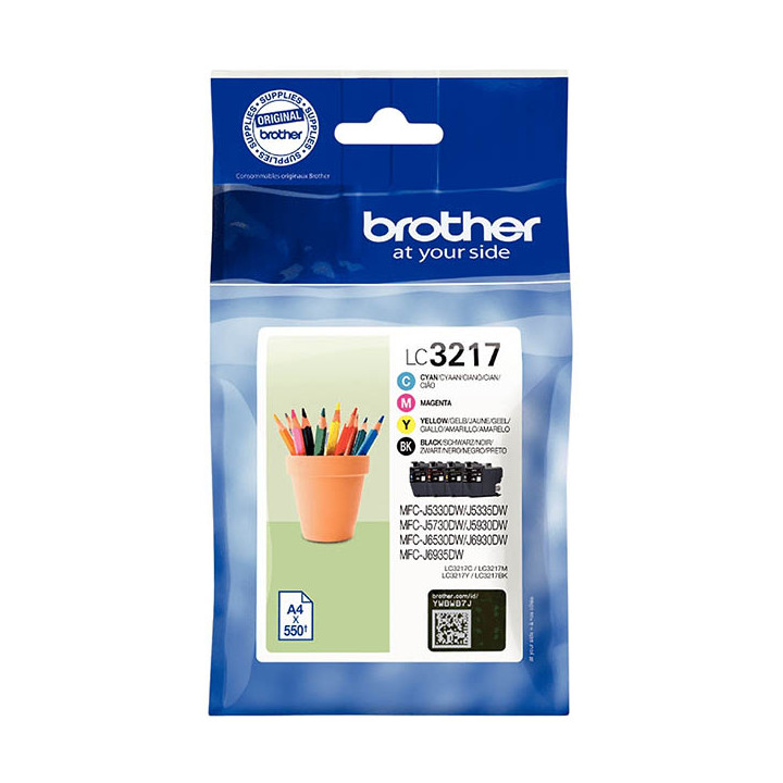 Brother POT pack de 4 cartouches jet d'encre noire, cyan, magenta et jaune authentique (LC3217VAL).