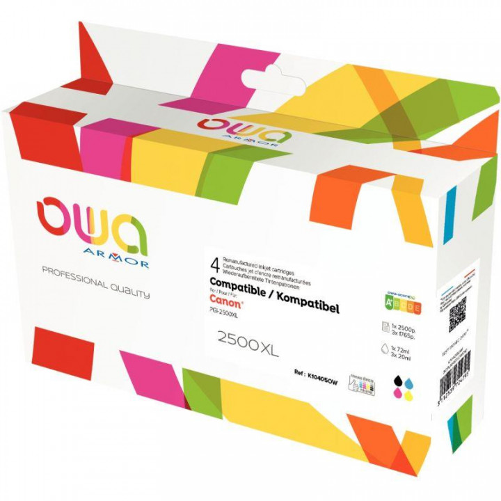 Lot 4 cartouches d'encre compatible à la marque Canon PGI2500XL noir cyan magenta et jaune haute capacité.