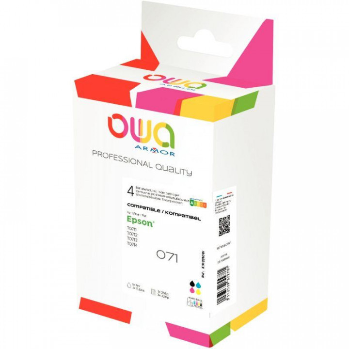 OWA Armor pack de 4 cartouches jet d'encre noire, cyan, magenta et jaune compatible Epson GUÉPARD (T071540). Garantie 3 ans