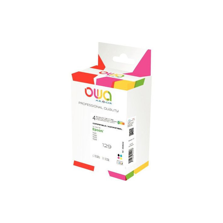 Lot de 4 cartouches encre compatible à la marque Epson T129540 noir cyan magenta jaune. Garantie 3 ans
