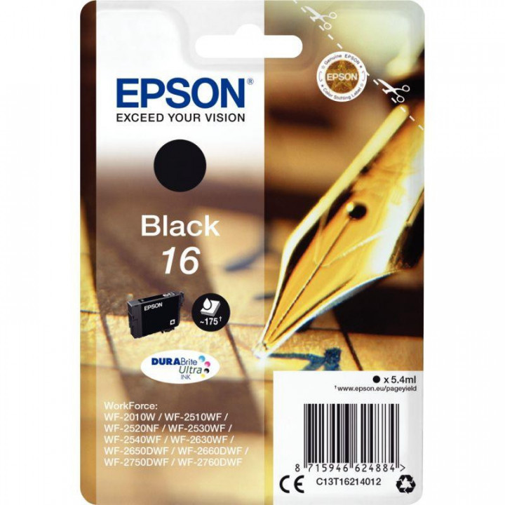 Cartouche jet d'encre à la marque Epson T162140 noir.