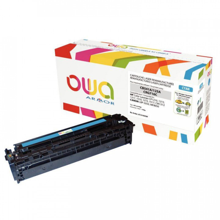 OWA Armor cartouche laser cyan compatible Canon / HP 125A / 716 (CB541A / 716). Garantie a vie