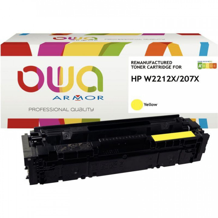 OWA cartouche laser jaune Haute capacité remanufacturée compatible HP 207X (W2212X). Garantie à vie