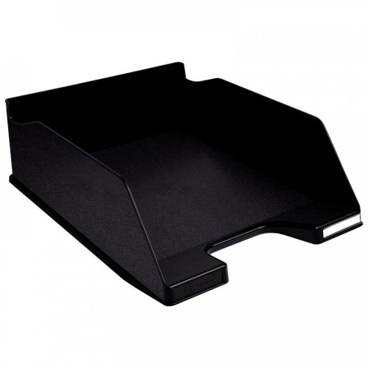 Corbeille à courrier maxi ECOBLACK noire. Corbeille à courrier pour documents au formar A4 Certifié Ange Bleu car réalisé à partir de bouteilles de jus de fruits recyclées - Solide et stable Superposable à la verticale ou en escalier La paire d'encoches brevetées COMBO2 permet une économie de place d'emballage et de transport Les éléments de superposition permettent d'augmenter la capacité de classement