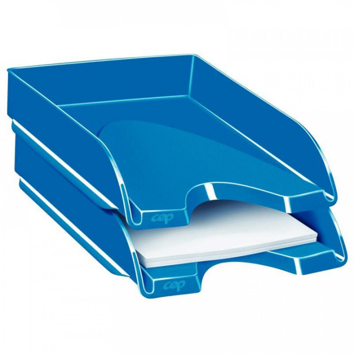 corbeille courrier fond plein ceppro gloss bleu ocean. Avec son design élancé, cette corbeille trouvera sa place sur tout style de bureau. Elle accepte les documents jusqu’au format 24 x 32 cm et les pochettes à élastique. Pratique, sa large ouverture à l’avant vous permet de saisir très facilement les documents contenus. Ces corbeilles se superposent verticalement ou « en escalier». En polystyrène antichoc très robuste et 100% recyclable. Dimensions 348 x 257 H 66 mm