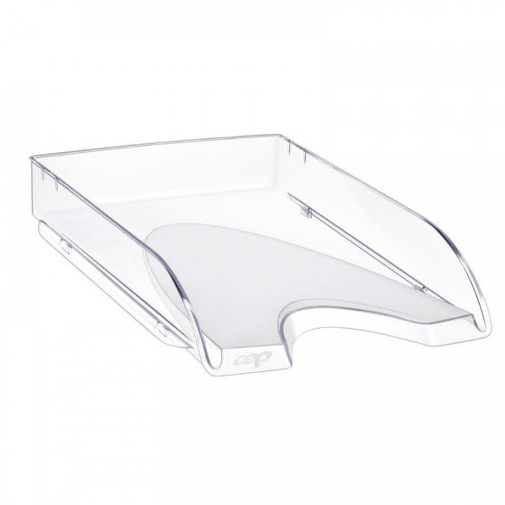 Corbeille à courrier CEPPRO cristal. Accepte les documents jusqu'au format 24 x 32 cm et les pochettes élastique. Large ouverture à l'avant Ces corbeilles se superposent verticalement ou en escalier. En polystyrène antichoc très robuste et 100% recyclable. Dimensions : 348 x 257 x H. 66 mm