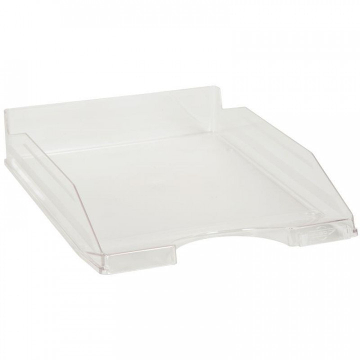 Corbeille à courrier FLUOR cristal. En polystyrène. Pour documents jusque 24x32cm. Se superposent.