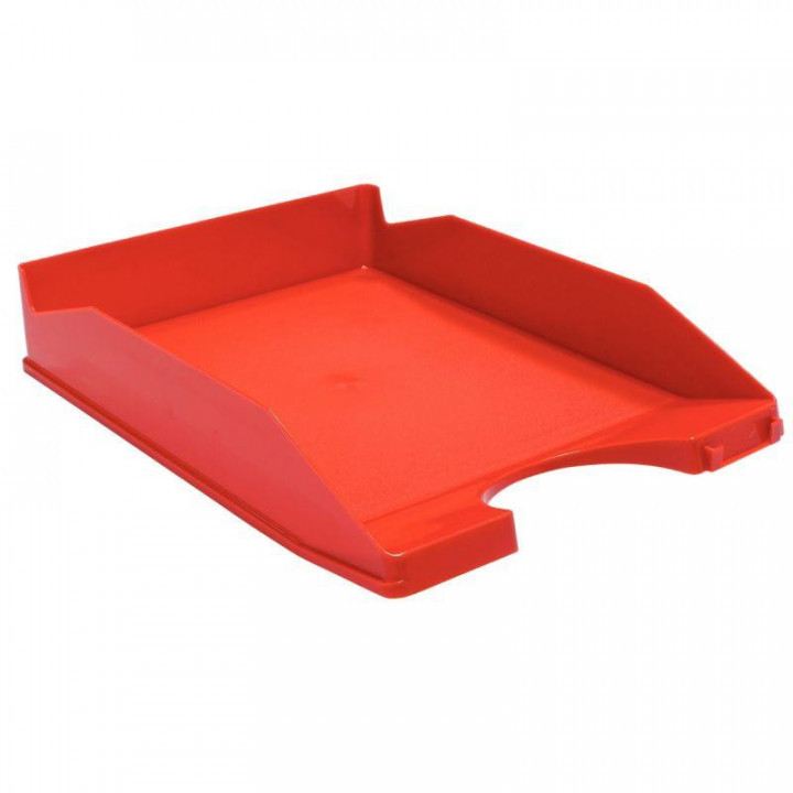 Corbeill à courrier rouge. En polystyrène. Pour documents jusque 24x32cm. Se superposent.