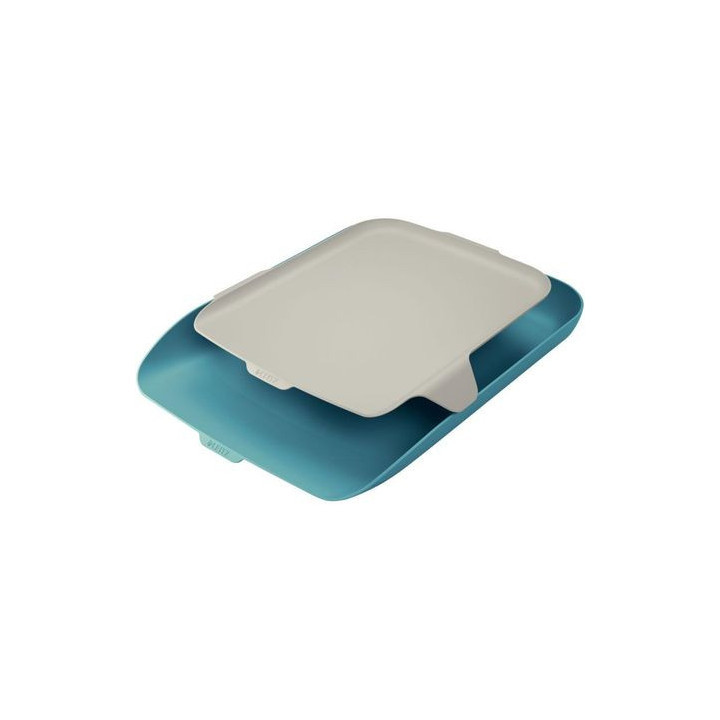 Corbeille à courrier + plateau organiseur A4 COSY bleu. Corbeille à courrier A4 avec organiseur de bureau pour ranger à la fois vos documents importants et votre tablette, téléphone portable ou autres accessoires. Combine une corbeille à courrier et un étage de rangement qui se pose simplement sur le dessus, ce qui permet d'accéder rapidement aux produits essentiels de la vie quotidienne. Convient pour le rangement de documents, magazines et dossiers jusqu'au format A4 & C4. La large ouverture à l'avant permet d'accéder facilement au contenu même lorsqu'il est empilé. Emballage sans plastique. La gamme Leitz Cosy combine confort et qualité premium pour créer un environnement de travail positif et productif.