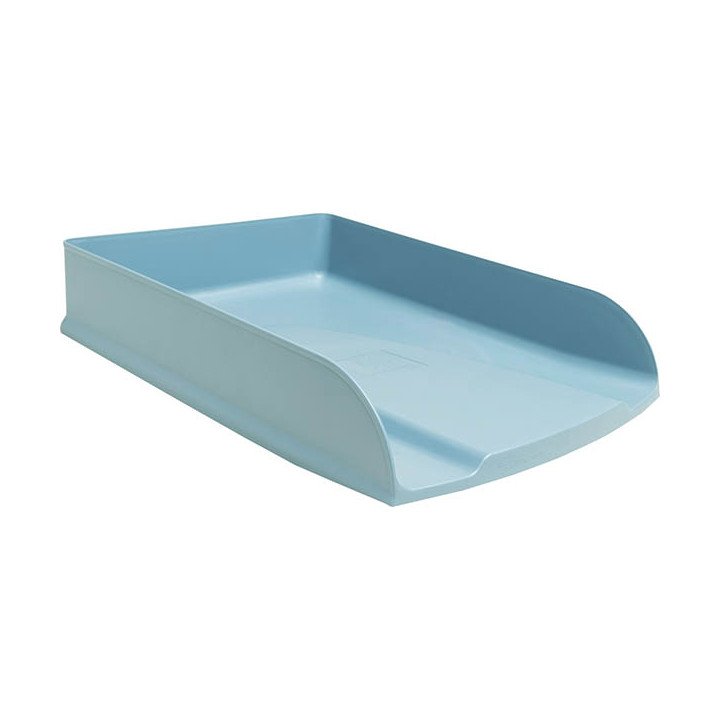 Corbeille à courrier AUTENTIK bleu. Corbeilles adaptées au bureau ou au Home Office, solides et stables. Format permettant de ranger des documents format A4+. Contenance 500 feuilles de papier. Superposables à la verticale ou en escalier et modulables à souhait. Compatibles avec de nombreux modèles existants. Porte étiquette à droite pour une identification aisée. Fabriquées en plastique recyclé issu des déchets ménagers. Garantie 25 ans.