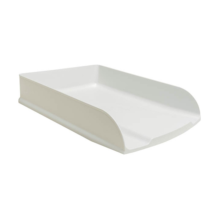 Corbeille à courrier AUTENTIK blanc. Corbeilles adaptées au bureau ou au Home Office, solides et stables. Format permettant de ranger des documents format A4+. Contenance 500 feuilles de papier. Superposables à la verticale ou en escalier et modulables à souhait. Compatibles avec de nombreux modèles existants. Porte étiquette à droite pour une identification aisée. Fabriquées en plastique recyclé issu des déchets ménagers. Garantie 25 ans.