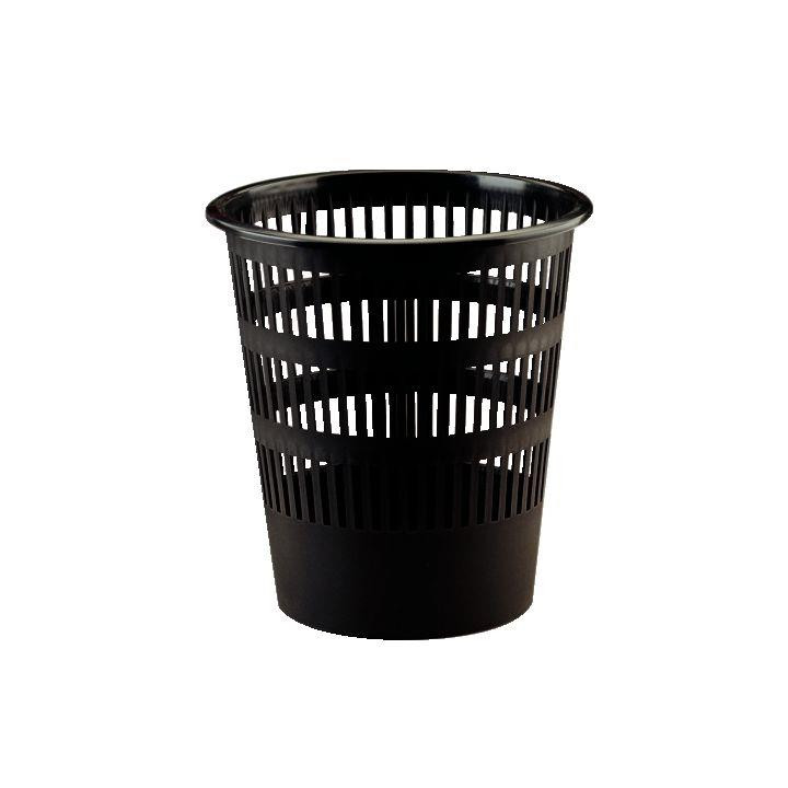 Corbeille à papier en plastique recyclé ajourée 16L noire. En plastique recyclé et 100% recyclableDe forme ronde et ajouréeDim : H30 cm D 32.5 cm