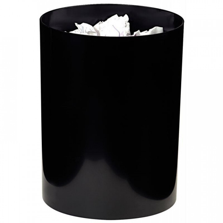 Corbeille à papier CONFORT 16L noire. Corbeille de très haute qualité en polystyrène choc brillant. Dimensions : Hauteur : 33.6 cm, diamètre 26 cm.