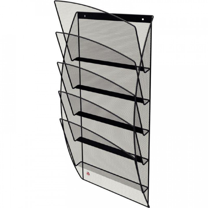Présentoir mural 5 compartiments à l'italienne MESH en métal noir. 5 compartiments format 24x32cm. Structure en Mesh (acier perforé). Assemblage facile pour un montage rapide (visserie fournie). Métal Mesh ultra résistant et solide. Dimensions : L.33,8 cm x H.65,3 cm x P.0,95cm. Garantie : 2 ans.