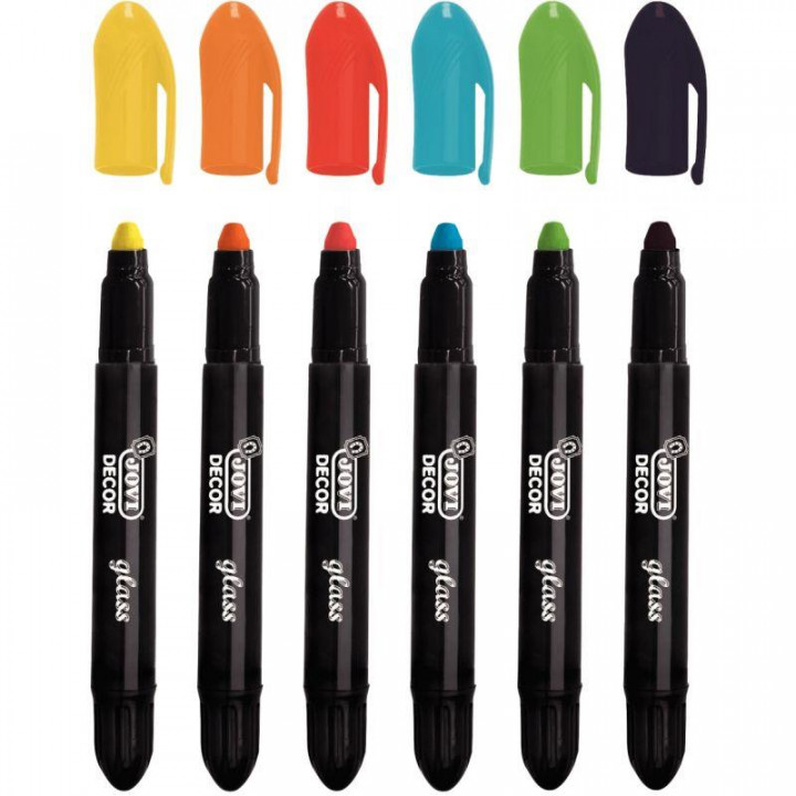Pochette de 6 craies décor glass. Craies de cire twist utilisables sur tous supports non poreux: verre, plastique, porcelaine, céramique, etc... 6 couleurs. Non permanents et s'effacent très facilement avec de l'eau et du savon. Faciles et agréables à utiliser.